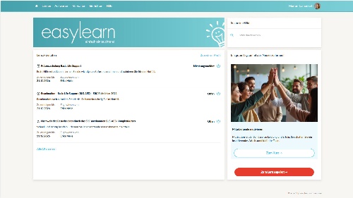 Zu Themen von allgemeinem Interesse bietet easylearn vorgefertigte e-Learning-Kurse, die individuell anpassbar sind an Ihre Bedürfnisse und Gegebenheiten: wie Ausbildungen zu IT-Themen (Windows, Office, etc.), Ausbildungen zu Arbeitssicherheit & Gesundheitsschutz (Basic Life Support Theorie, Verhalten im Brandfall, Ergonomie am Arbeitsplatz, etc.)