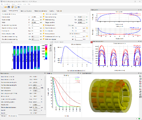 The software calculates the load distribution an life of rolling bearings considering operating clearance, centrifugal forces and tilting moment.